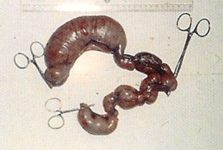 Links: Typisches Erscheinungsbild einer Gebärmutter mit glandulär-zystischer Hyperplasie nach chirurgischer Kastration. Ohne Behandlung entwickelt sich diese Erkrankung zu einer Pyometra, die das Leben der Hündin gefährden kann.