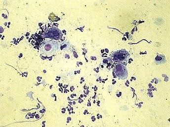 Durch einen Scheidenabstrich kann man Vaginitits diagnostizieren. Man bemerkt viele kleine Blutkörperchen.